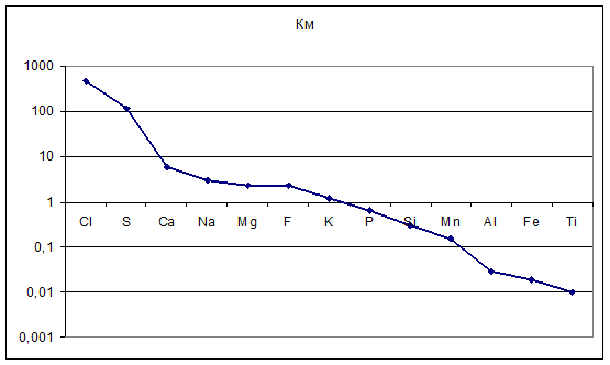 На рисунке 2.7 приведены значения коэффициентов водной миграции для химических элементов, входящих в основные породообразующие минералы.
