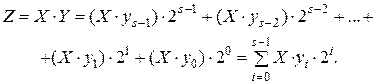 Пусть сомножителями X и Y являются s-битные целые числа без знака: