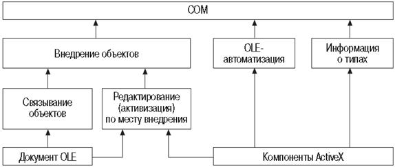 Под термином «СОМ-ориентированные технологии» (COM-based) подразумевается набор разнообразных программных технологий, опирающихся на модель COM как на некий фундамент (Рис. 9). В этот набор входит широкий спектр технологий корпорации Microsoft: