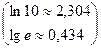Между десятичными и натуральными логарифмами имеет место такая связь: