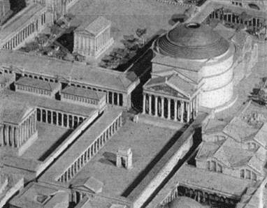 Пантеон, или «Храм всех богов» построен в правление Адриана заново (около 125 г. н.э.) на месте храма того же наименования, возведенного Агриппой в правление Августа (I в. до н. э.):