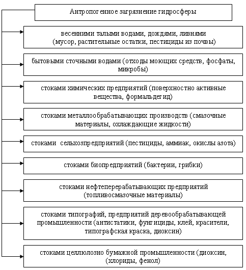 Рис. 1.3.8. Антропогенные источники загрязнения гидросферы