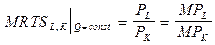 В долгосрочном режиме в точке оптимума – предельная норма технологического замещения равна отношению цен ресурсов и равна отношению предельных продуктов: