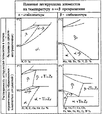 Рис.21.1. Влияние легирующих элементов на полиморфизм титана: