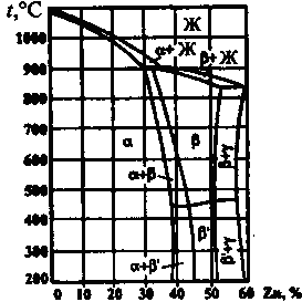 Рис.21.2. Диаграмма состояния медь – цинк