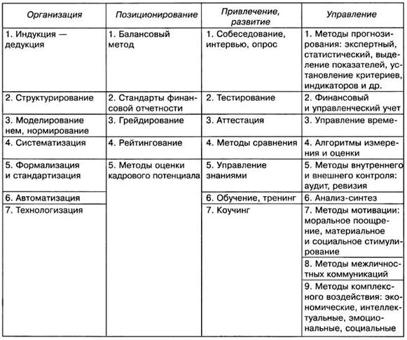 Успешность воплощения кадровой стратегии базируется на применении совокупности обозначенных способов и методов управления кадровыми ресурсами.