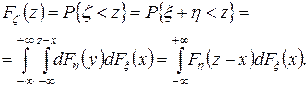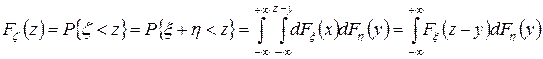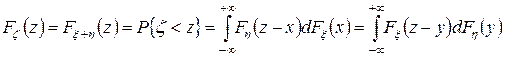 | Определение | Функция , определяемая формулой , называетсясверткой функций распределения и и обозначается . |