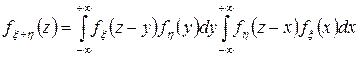 | Определение | Функция , определяемая формулой называется сверткой плотностей распределения и и обозначается . |