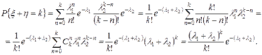 Таким образом, сумма двух независимых случайных величин, имеющих распределение Пуассона с параметрами