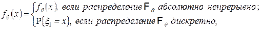 Функция, фигурирующая в последнем определении, является плотностью относительно меры Лебега для абсолютно непрерывного распределения и плотностью относительно считающей меры для дискретного распределения.