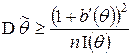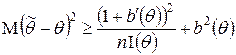 | Теорема неравенство Крамера–Рао для смещенных оценок | Пусть семейство распределений удовлетворяет условию регулярности, информация Фишера существует, положительна и непрерывна по во всех . Тогда для любой оценки , дисперсия которой ограничена на любом компакте в области , справедливо неравенство или . |
