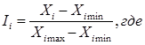 Xi min и Xi max – минимальное и максимальной значение i- го показателя