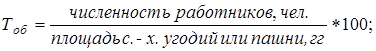 1) Трудообеспеченность – характеризует количество работников в расчете на 100 га земельной площади:
