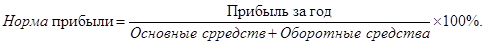 4) норма прибыли, которая рассчитывается как процентное соотношение прибыли от реализации сельскохозяйственной продукции к среднегодовой стоимости основных и оборотных фондов (средств) по формуле: