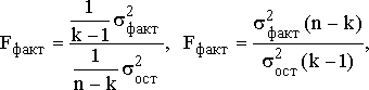 Построив уравнение регрессии, проводят оценку его надежности. Оценка надежности параметров уравнения проводится на основании анализа случайной компоненты. Это делается посредством критерия Фишера (F). Фактический уровень (Fфакт) сравнивается с теоретическим (табличным) значением: