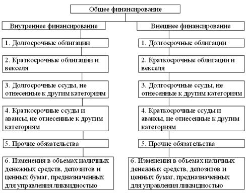Классификация операций финансирования составлена таким образом, чтобы показать источники получения финансовых средств, необходимых для покрытия дефицита сектора государственного управления, а также использование тех средств, которые образовались в результате превышения доходов над расходами.