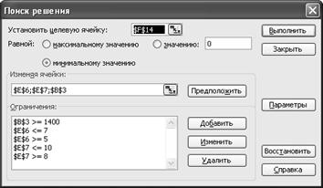 Рис. 12. Задание условий для минимизации фонда заработной платы
