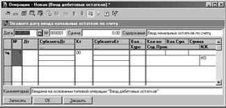 Рис. 29. Выбор операции «Ввод дебетовых остатков»