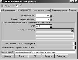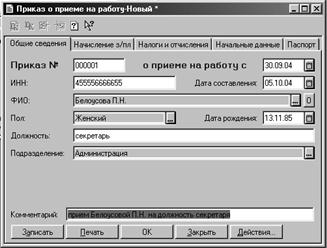 Рис. 38. Приказ о приеме на работу