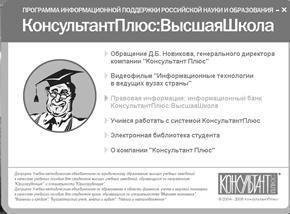 | После запуска программы с рабочего стола выберите пункт «Правовая информация: информационный банк КонсультантПлюс: Высшая школа» | ![]()