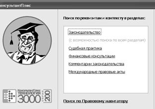 | Для работы со СПС «Консультант Плюс» выберите информационную базу «Законодательство» | ![]()