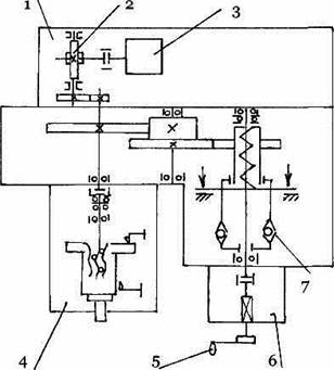 Рис. 4.11. Электрический исполнительный механизм МЭО: 1 - сервопривод; 2 - блок сервопривода; з - электродвигатель; 4 - редуктор; 5 - выходной рычаг; 6 – ручной маховик