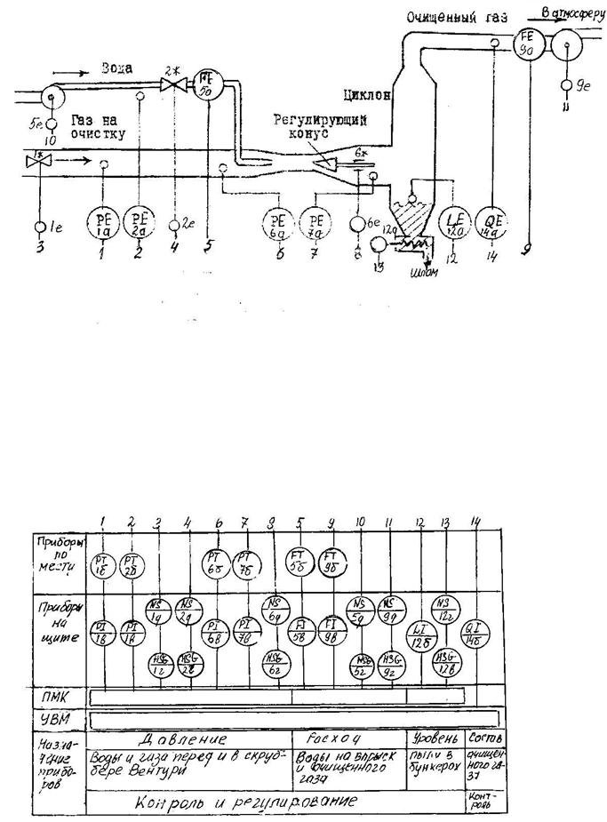 На рис.6.23 приведена функциональная схема автоматизации управления скруббером Вентури, а в табл.6.4 спецификация к ней.