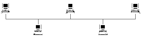 Все объекты распределенной ВС взаимодействуют между собой по каналам связи. В п. 5.1.1 рассматривалась причина успеха УА, состоящая в использовании в РВС для связи между объектами широковещательной среды передачи которое означает, что все объекты распределенной ВС подключаются к одной общей шине (топология сети - "общая шина", рис. 6.1). Это приводит к тому, что сообщение, предназначенное (адресованное) только одному объекту системы, будет получено всеми ее объектами. Однако только объект, адрес которого указан в заголовке сообщения как адрес назначения, будет считаться тем объектом, кому это сообщение непосредственно направлялось. Очевидно, что в РВС с топологией "общая шина" необходимо использовать специальные методы идентификации объектов (п. 7.1), так как идентификация на канальном уровне возможна только в случае использования сетевых криптокарт.