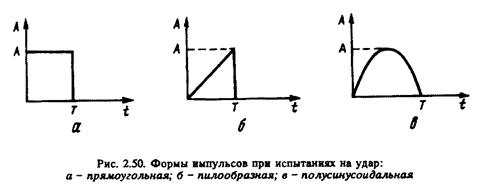 При воспроизведении в лабораторных условиях режимов ударного нагружения накладывают ограничения на0форму импульса мгновенного ускорения как функции времени (рис. 2.50), а также на допустимые пределы отклонений формы импульса. Практически каждый ударный импульс на лабораторном стенде сопровождается пульсацией, являющейся следствием резонансных явлений в ударных установках и вспомогательном оборудовании. Так как спектр ударного импульса в основном является характеристикой разрушающего действия удара, то наложенная даже небольшая пульсация может сделать результаты измерений недостоверными.