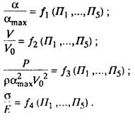 Безразмерные комплексы, составленные из определяемых параметров ударного процесса, будут некоторыми функциями независимы] безразмерных комплексов П1 — П5.