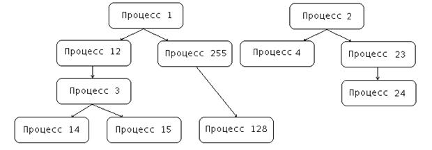 Рисунок 5.4 - Упрощенный генеалогический лес процессов. Стрелка означает отношение родитель-ребенок.