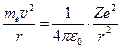 Электрон в атоме Бора движется вокруг ядра под действием кулоновских сил. В первом приближении можно считать, что масса ядра бесконечно велика по сравнению с массой электрона. В этом случае ядро остаётся неподвижным, а электрон движется по круговым орбитам. Уравнение его движения можно записать так: