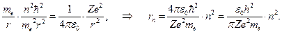 Добавив условие квантования момента импульса круговых орбит из первого постулата Бора, получаем систему двух уравнений