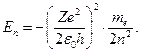 Здесь me – масса электрона, n = 1, 2, 3, – главное квантовое число.