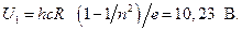 При n = 2 получаем 1-й потенциал возбуждения атома водорода.