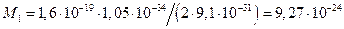 Магнитный момент кругового тока M = iS, где i – ток, протекающий по замкнутому витку, а S – площадь витка. Циркулирующий по круговой орбите электрон создаёт ток i = en = evç 2 pr, где n – частота обращения электрона. Выразив скорость v орбитального движения электрона через механический момент импульса v = Lçmer, и подставив, получаем: i = evç 2 pr = eLç 2 mepr 2. Площадь «витка» S = pr 2, где r – радиус орбиты. Отсюда орбитальный магнитный момент электрона