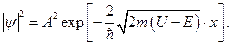 Оказалось, что коэффициент отражения частицы от барьера R = 1, а коэффициент пропускания T = 1 – R = 0. Это соответствует классическим представлениям. Но плотность вероятности обнаружить частицу массой m за барьером не равна нулю. Она определяется выражением: