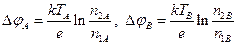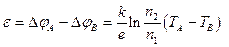 Концентрация свободных электронов слабо зависит от температуры. Поэтому можно полагать, что n 1 A = n 1 В = n 1, n 2 A = n 2 В = n 2. ЭДС, возникающая в цепи, равна