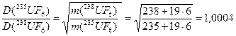 Если уран нагреть в атмосфере фтора F2, то получится гексафторид урана UF6. При температуре 56,5°С гексафторид возгоняется с естественным распределением концентрации молекул, содержащих изотопы U-234, U-235 и U-238. Относительное содержание изотопа U-234 очень мало (меньше 1% по отношению к U-235), поэтому в дальнейших рассуждениях изотопом U-234 пренебрегаем.