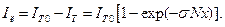 В результате дробления тяжелых частиц интенсивность I Т пучка тяжелых частиц должна убывать с расстоянием по закону Бугера,