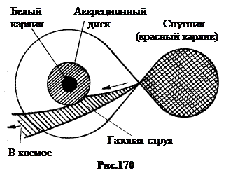 а. Новые звезды (НЗ) – это тесные двойные звездные системы с суммарной массой 1-5 масс Солнца, вращающиеся около общего центра масс (рис.170). До вспышки они имеют визуальную звездную величину 4-5 единиц.
