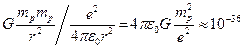Например, отношение силы гравитационного притяжения между двумя протонами к силе кулоновского отталкивания составляет