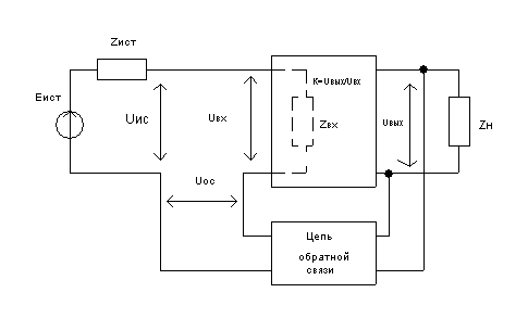 Влияние отрицательной связи на коэффициент усиления и его стабильность. В усилителе с обратной связью напряжение на входе изменяется в результате действия обратной связи, т.е