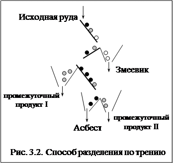 Способ предназначен для отделения асбеста от змеевика. Коэффициенты трения для асбеста и змеевика: f а = 0.86; f з = 0.3-0.5.