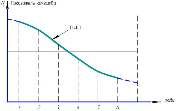 Рис. 1.3. Изменение показателей качества за срок службы автомобиля.