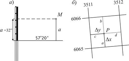 Рис. 4.6. Определение координат точек: а - географических; б – прямоугольных.
