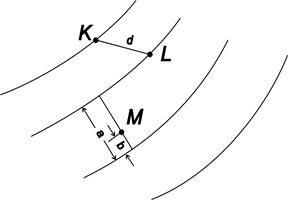 Дополнительный эффект измерения отрезков a, b, c, d и использования формул (4.1) состоит в ослаблении погрешностей, вызванных деформацией бумаги. Такой же прием может быть применен и при определении географических координат.