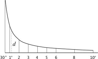 При пользовании картой углы наклона не вычисляют, а определяют с помощью графика заложений (рис. 4.8), расположенного под южной рамкой карты. По горизонтальной оси графика отложены углы наклона, а по вертикальной - соответствующие этим углам заложения d, выраженные в масштабе карты и рассчитанные по формуле