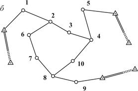 Рис. 6.2. Полигонометрия: а - полигонометрический ход; б – система ходов