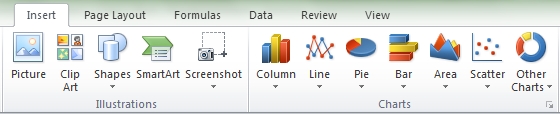 3. В верхнем меню нас интересует группа «Вставка» ("Insert"). В ней смотрим панель "Charts".